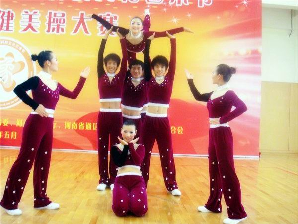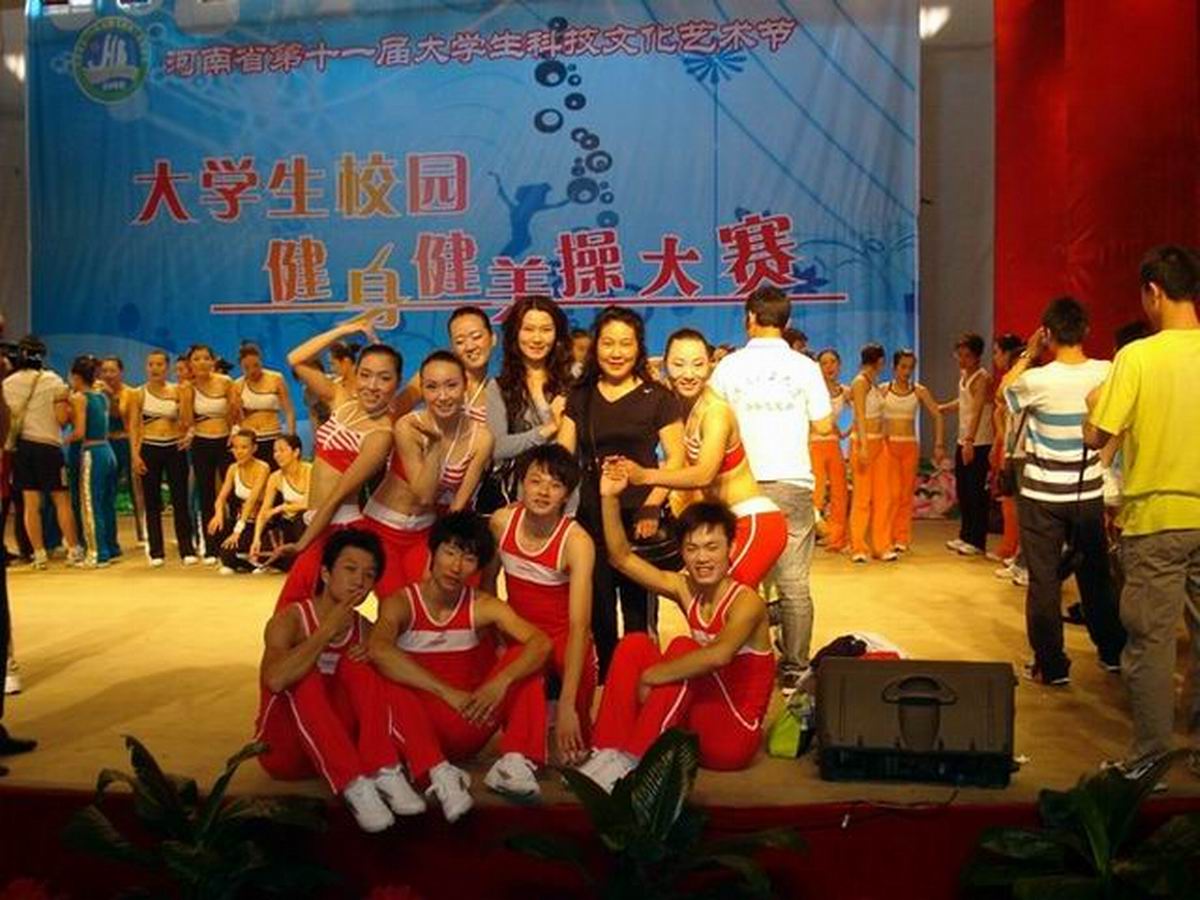 本届艺术节健身健美操大赛于5月10日至11日在焦作河南理工大学举行,共有河大,郑大等16所高校的代表队参加了专业组的比赛。