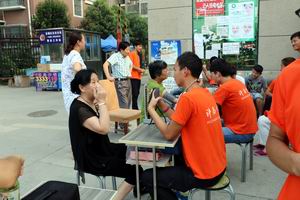 由于伟德国际victor1946官网“运动走进生活,健康常伴左右”主题活动在孙湾小区进行了几天,小区的大爷大妈们和实践队员们也熟悉了起来,我们一走进小区,就有大爷大妈们走过来要测量血压,也有要按摩的大妈们,小孩子们成群结队的跑过来要学习武术和舞蹈,看到小区居民们这么热情,队员们则以十二分的热情服务大家,小区的健身场所周围树木环绕着各种花草树木,然而蚊虫也多了,但是丝毫不影响队员们的工作热情,经过这几天的武术舞蹈教学,小朋友们学的也是十分认真,技术动作也算过关。