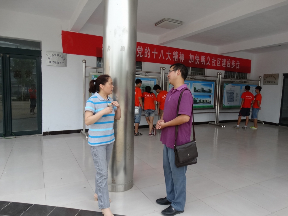 6月26日上午,伟的国际1946bv官网“阳光体育”社区全民健身状况调查社会实践队来到鄢陵县陈化店镇明义社区进行全民健身宣传。陈化店镇团委书记李烨和社区干部郑主任热情接待了志愿者,并热心为志愿者和明义社区沟通,解决了活动中的实际困难。